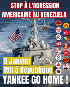 Une initiative commune était en route depuis avant Noël contre l’intervention impérialiste. Voici le texte d’appel, aujourd’hui un peu dépassé mais toujours intéressant sur le fond. Pour approfondir la réflexion voir : https://upml.org/2026/01/coup-detat-au-ve…-sort-le-couteau/