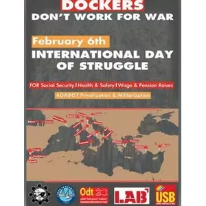 L’appel est dirigé contre les plans de réarmement de l’UE et les gouvernements européens pour militariser les ports et les infrastructures stratégiques. Mais aussi que les plans de mise à niveau sont utilisés comme prétexte pour la privatisation et l’automatisation des ports. Il prend clairement position contre l’impact de l’économie de guerre sur les salaires, les droits, la santé et la sécurité au travail. La coordination européenne de l’organisation révolutionnaire mondiale ICOR disait le 24 Janvier: « C’est un excellent moyen de coordonner et de coopérer les luttes de classe en Europe et leur révolution. Nous demandons à toutes nos organisations membres, en fonction de leurs possibilités d’actions, de combat et de protestation, de rassemblements, de grèves et d’autres formes d’action pour le 6 »